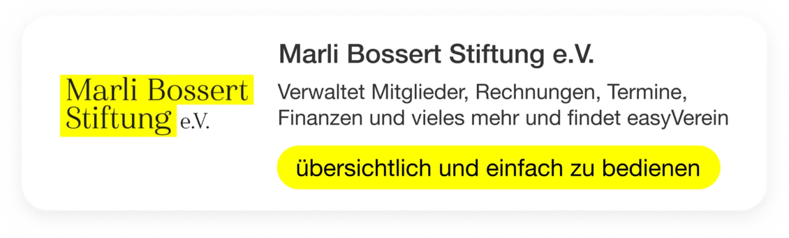 „Mit easyVerein habt ihr euren gesamten Vereinsalltag sicher im Griff. Von der digitalen Mitgliederverwaltung über das intuitive Finanzmodul bis hin zur Terminplanung und Dateiverwaltung – alles ist übersichtlich in einer cloudbasierten All-in-One-Lösung gebündelt. So digitalisiert ihr euren Verein und spart wertvolle Zeit, damit mehr Raum für die wirklich wertvollen Vereinsmomente bleibt.“