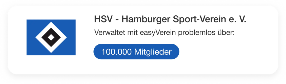 easyVerein ist grundsätzlich für alle Vereinsgrößen- und arten geeignet. Unsere kleinsten Vereine verwalten in easyVerein kleinste, zweistellige Mitgliederzahlen, unser aktuell größter Kunde, der Hamburger Sport-Verein e.V., über 145.000, mit steigender Tendenz.