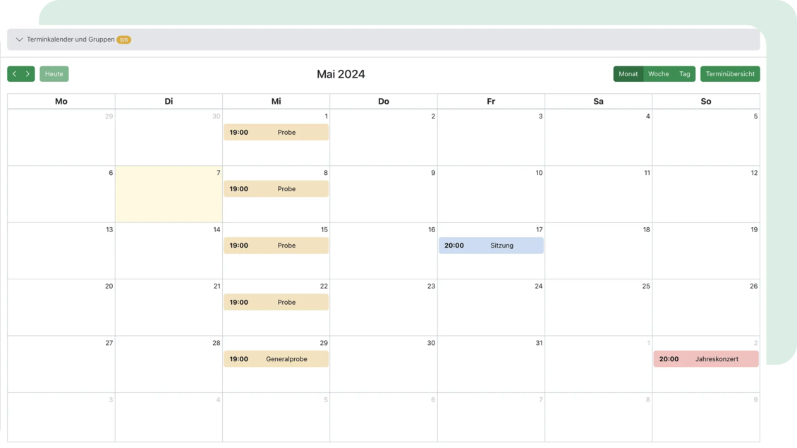 Ein aktives Vereinsleben lebt von einer perfekten Organisation. Mit der digitalen Terminverwaltung von easyVerein plant ihr sämtliche Events, Trainings und Vorstandssitzungen übersichtlich in einem gemeinsamen Vereinskalender. Gleichzeitig haltet ihr wichtige Sitzungsergebnisse durch die integrierte Protokollfunktion professionell und transparent fest.
